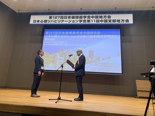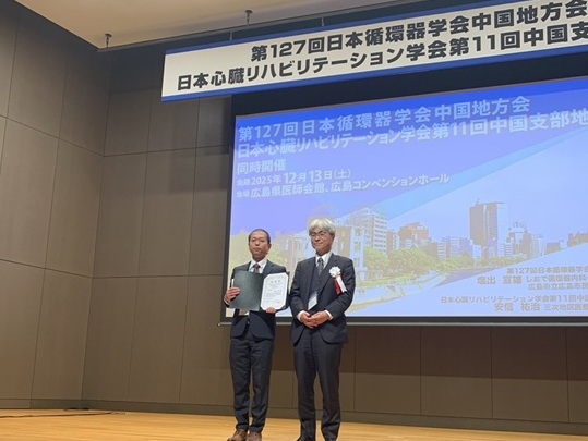 2025年12月13日、広島で開催された「日本心臓リハビリテーション学会 第11回中国支部地方会」において、当院理学療法士の澁谷および管理栄養士の若狭がYIA(優秀演題アワード)に選出されました。